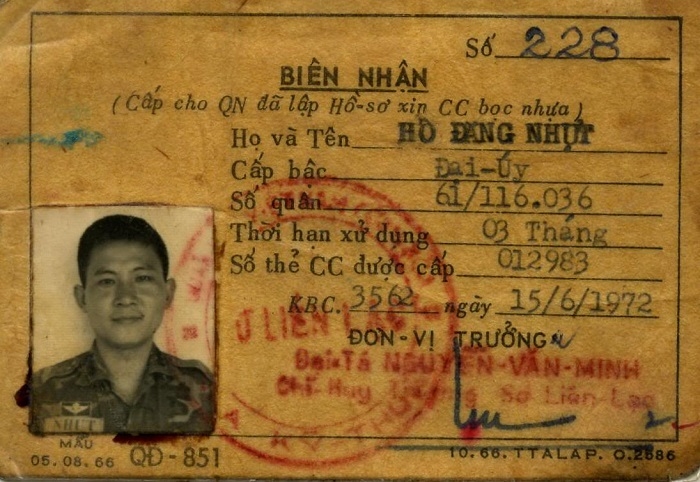 Trời ơi, Hồ đăng Nhựt ơi ! Anh đã bỏ mẹ con em, anh đã bỏ lại bạn bè và đồng đội trong lúc đất nước đang hồi nghiệt ngã. Tôi cùng các anh em đi đến Nghiã Trang Quân Đội tại Biên Hòa, được một chú lính đưa tôi đi qua dãy hộc tủ chứa đựng tử thi và cuối cùng chúng tôi dừng lại. Dừng lại để chấp nhận một sự bẽ bàng, dừng lại để gói trọn một vụn vỡ đến tê dại toàn thân, nhận một kiếp đời góa phụ. Chiếc hộc tủ gói gọn hình hài của thiếu tá Hải và thân xác chồng tôi đang nằm bất động. Trời ơi !