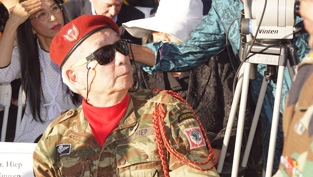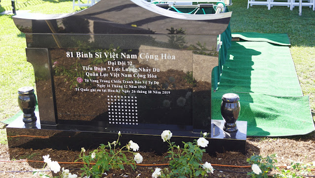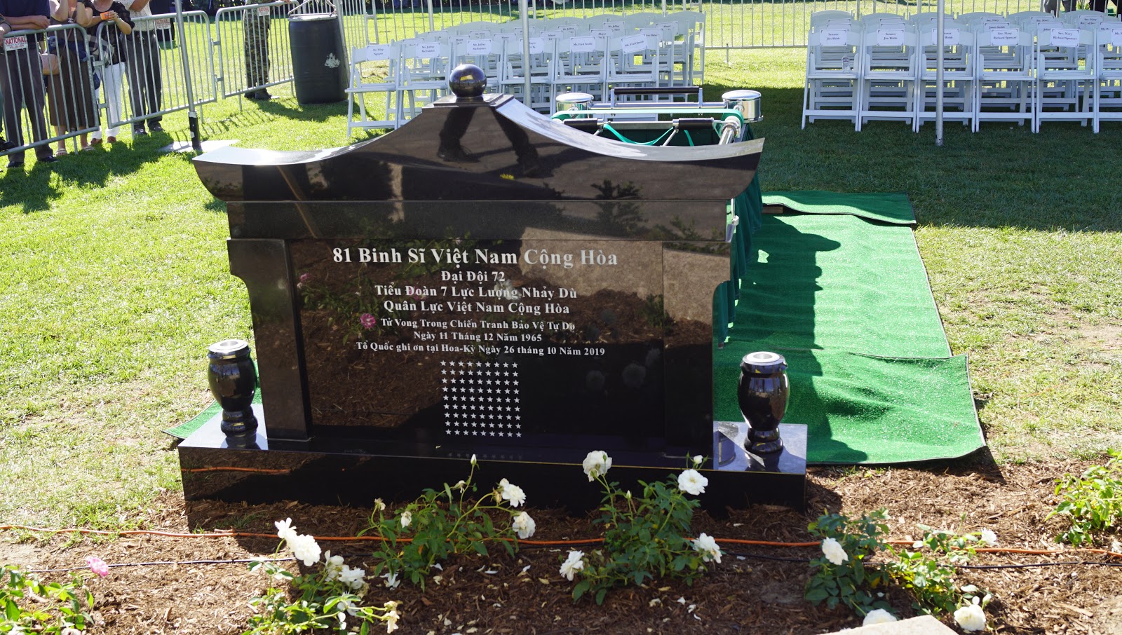 Một lời cám ơn chân thành và sâu đậm cho đất nước Hoa Kỳ đã cưu mang chúng ta, những người Việt tỵ nạn CS, và đặc biệt Thượng Nghị Sĩ Jim Webb, mệnh danh là bạn của người Việt, đã cho phép Gia Đình Mũ Đỏ dự vào phần truy điệu, vinh danh và chôn cất các anh em của mình, 81 tử sĩ Nhảy Dù của Việt Nam Cộng Hòa, qua quỹ “The Lost Soldiers Foundation” mà trước đây chưa bao giờ có sự kiện tử sĩ không phải là công dân Mỹ được chôn trên đất Mỹ.