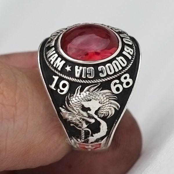 Tôi nhẹ nhẹ cầm chiếc hộp lên bằng hai tay và mở nó. Một thứ ánh sáng như lóe lên: chiếc nhẫn Võ Bị năm xưa của tôi hiện ra, sáng bóng, nằm trong hộp trên một miếng nỉ trắng.