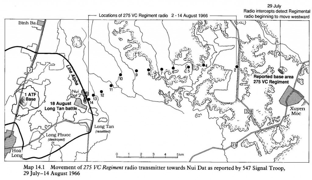 Ai đã từng bay đều biết có một bộ nhận sóng radio FM gọi là FM Homing để tìm hướng trên máy bay. Khi nhận được một tần số FM thì kim địa bàn ADF sẽ chỉ vào hướng phát sóng. Giao điểm của 2 hướng phát sóng nhận được từ 2 vị trí khác nhau sẽ là điểm phát sóng. Và cứ thế ngày 29/7/66, bộ phận dò sóng của quân Úc phát hiện ra là những cái điểm phát sóng của Trung đoàn 275 VC từ mật khu ở Núi Đất 3 huyện Xuyên Mộc nó bắt đầu di chuyển về hướng Tây.