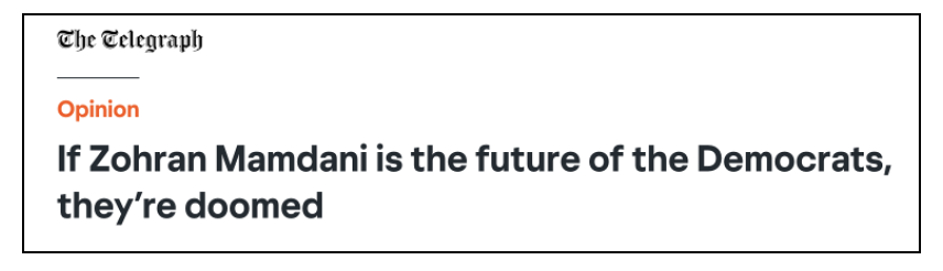 Báo Anh The Telegraph chạy tít lớn: "Nếu Zohran Mamdani là tương lai của đảng CD thì đảng này tiêu tùng rồi".