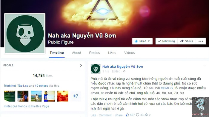 Trang Facebook của Nah Nguyễn Vũ Sơn được hơn 14.000 likes