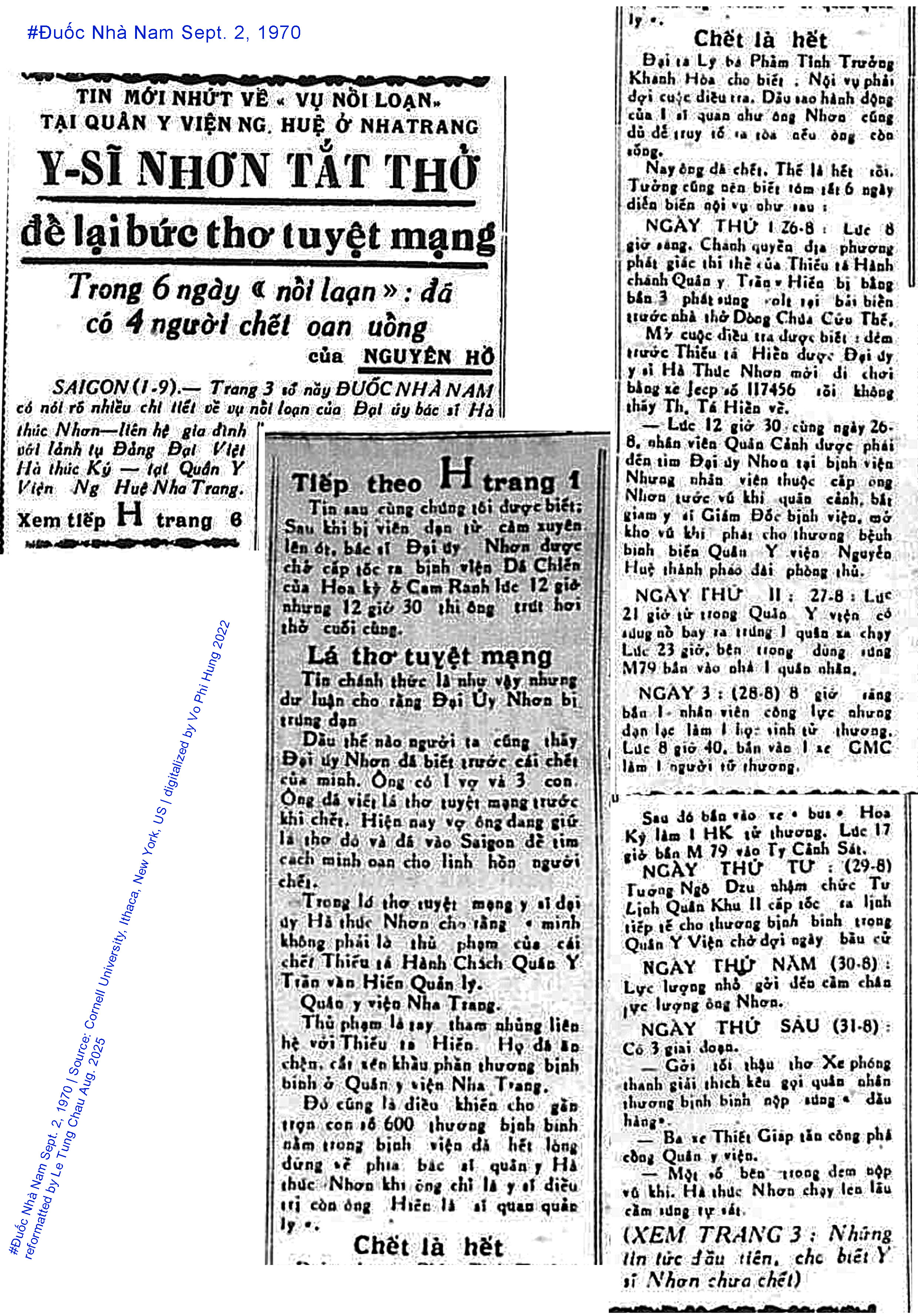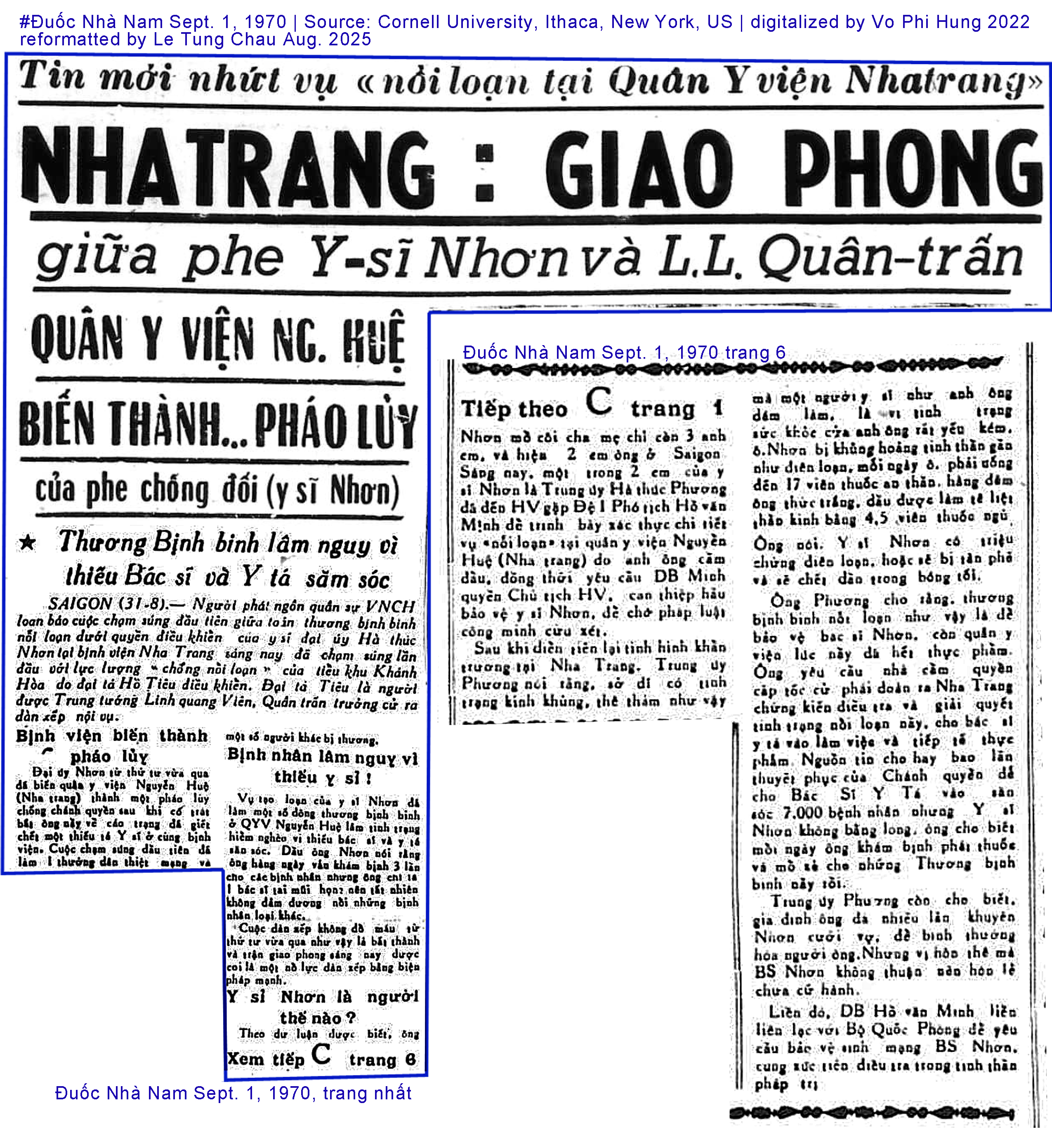 #Đuốc Nhà Nam Sept. 1, 1970, toàn bài "Vụ nổi loạn ở Quân Y Viện Nha Trang"