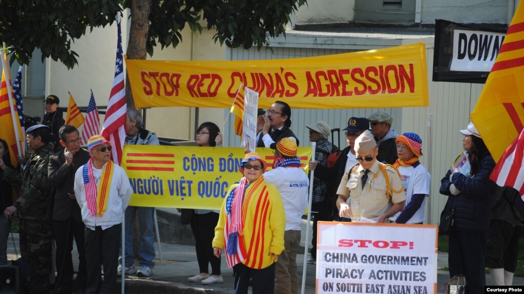 Biểu tình trước Tổng Lãnh sự quán Trung Quốc ở San Francisco dịp kỷ niệm 40 năm trận hải chiến Hoàng Sa (ảnh Bùi Văn Phú)