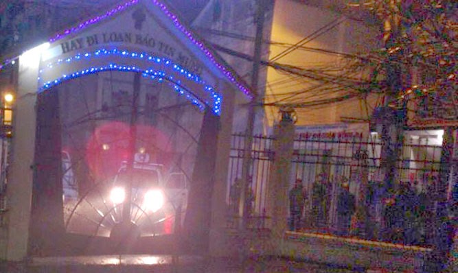 Theo Facebook linh mục Đinh Hữu Thoại, vào lúc 23g00, công an đang gọi loa yêu cầu nhà thờ mở cổng để công an vào 'làm việc'.