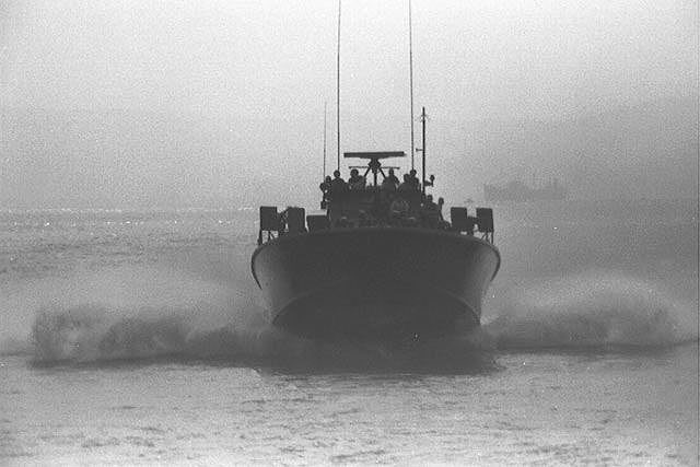 Bốn PT boats phản ứng nhanh nhẹn như chiếc máy, như trong những lần thực tập vận chuyển dưới bầu trời đêm, nhưng chỉ có khác chăng là mồ hôi rịn ra trong lòng bàn tay, lấm tấm trên vần trán rộng, tim đập nhanh hơn, thần kinh căng thẳng và chung quanh những tiếng nổ bùng vang dội; tay vuốt mặt lia lịa vì nước biển văng lên sau những tiếng nổ bùng như sấm sét rồi tắt ngúm.