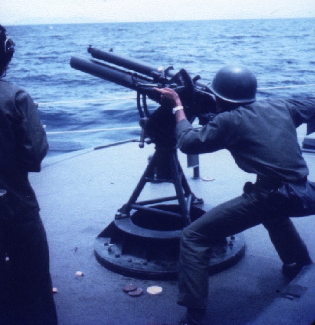 ” Khoảng cách bờ 5000 yards thưa anh Hai, mình sắp sửa ra khỏi tầm đạn của tụi Vẹm rồi.” Nguyên nhận rõ báo cáo và chỉ thị nhân viên ngưng bắn vì đã xa bờ: