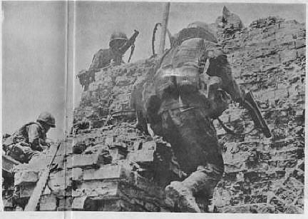 Từ nhà thờ Trí Bưu, đại đội đi lom khom, lẩn khuất trong các khu vườn nhà dân, từ vườn nầy qua vườn khác, để tránh địch phát hiện. Tới phía ngoài Cổ Thành, trong vị trí bố phòng của các đại đội Nhảy Dù, tôi nhìn thấy có một số binh sĩ Nhảy Dù tử thương, bị thương, đang nằm trên các băng ca, chưa kịp di tản. Cũng vào lúc đó hàng loạt trái đạn do Pháo Binh tác xạ, rồi tiếp theo sau là các chiến đấu cơ A.37, Skyraider của Không Quân Việt Nam đang thay nhau oanh tạc, nổ dồn dập, inh ỏi trên Kỳ Đài Cổ Thành Quảng Trị. Nhưng, bỗng dưng, không rõ từ đâu có hai chiến đấu cơ loại F.5 của Mỹ, bay vào khu vực giội bom, nổ lạc hướng về phía phòng thủ của Nhảy Dù, gây nên tổn thất nặng nề về nhân mạng cho Đại Đội 51 và 52 của Tiểu Đoàn 5 Nhảy Dù và một ít cho hai Đại Đội 3 và 4 Biệt Cách Nhảy Dù đang bố phòng kế cận. Sự kiện nầy làm cho quân số của Nhảy Dù hao hụt nhiều hơn. Họ tham gia cuộc hành quân tái chiếm Quảng Trị kể từ đầu Tháng Năm cho đến giờ, vậy là đã hơn 2 tháng. Hai tháng đánh trận liên miên, ngày đêm không ngơi nghỉ, sức voi cũng không chịu nổi. Tôi nghĩ thầm mà thấy thương cho các chiến hữu của tôi.