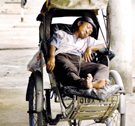 Lái cyclo không phải dễ như mọi người tưởng. Yên xe rất cao nên những người “thiếu thước tấc” rất khó “leo” lên, đó là chưa kể khi leo được lên yên chưa chắc đã đạp được hết vòng nếu chân quá ngắn.