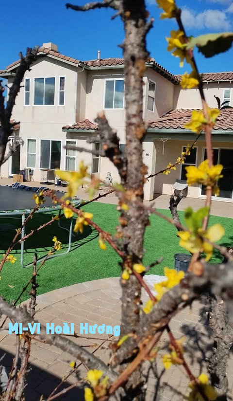 Nhiều cuộn mây trắng lững lờ bồng bềnh gợn trên lưng trời sáng bạc, mây là đà in bóng trên mặt nước có hòn non bộ sau khu vườn hoa. Nắng long lanh ươm hồng những cành anh đào chúm chím nụ hồng, nắng nhảy nhót nơi cánh lá rì rào và bóng mướt. Chùm mimosa vàng rung rinh theo gió tỏa mùi hương thoảng nhẹ hơi hăng hắc. Từng đàn chim én thoăn thoắt chao liệng trên không trung, chúng bay bướm vẽ đường cong lả lướt, thật ngoạn mục. Tiếng thông reo vi vu hòa cùng tiếng chim ríu rít gọi nhau về mở hội ngày đầu năm mới ở hiên ngoài, tôi nghe thật vui tai.
