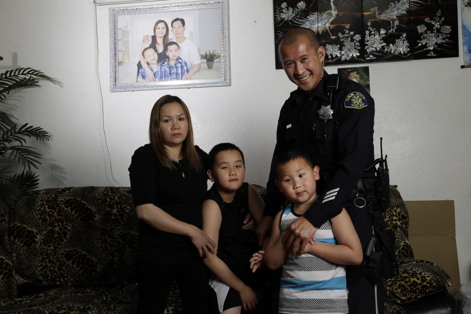 In this May 21, 2014 photo, San Jose police officer Huan Nguyen, right, poses for a portrait