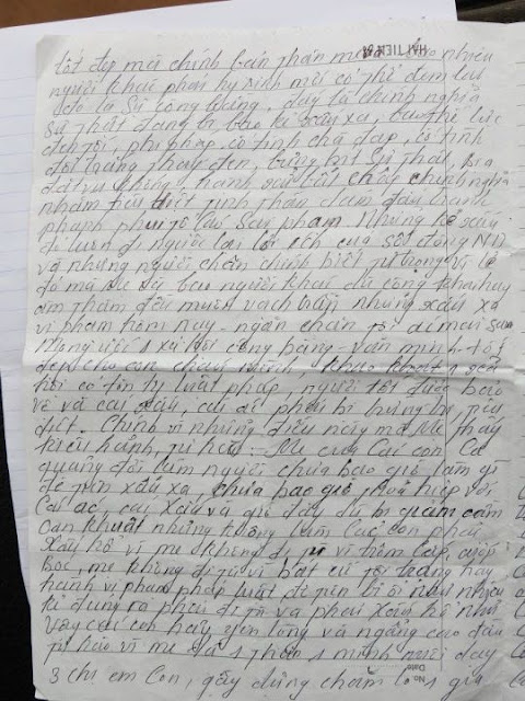 Thư chị Bùi Thị Minh Hằng viết từ trại giam Thanh Hà