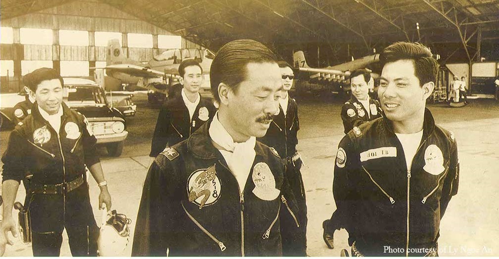 Huy Cương, Nguyễn Quốc Phiên; hàng trước, Thiếu tướng Nguyễn Cao Kỳ, Đại úy Trần Bá Hợi