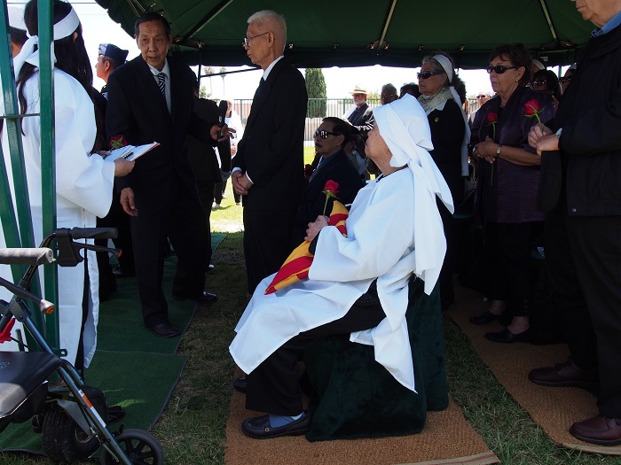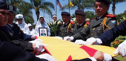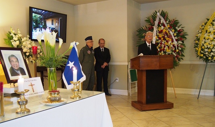 Lễ phủ cờ do Hội Ái Hữu KQ Trung Cali và Hội Cựu SVSQ Võ Bị Quốc Gia cùng phối hợp thực hiện (nhắc lại: NT Võ Dinh xuất thân Khóa 3 VBQG) dưới sự chứng kiến của cựu Trung tướng Nguyễn Bảo Trị, Giáo sư Toàn Phong Nguyễn Xuân Vinh, cựu Tư Lệnh KQ, cựu Đại Tá TQLC Cổ Tấn Tinh Châu, Tổng Hội Võ Bị Đà Lạt, bà quả phụ Chuẩn tướng KQ Lê Trung Trực, bà quả phụ Chuẩn tướng KQ Phạm Ngọc Sang, cùng tang quyến, đồng đội và thân hữu, trong đó có cựu Đại tá KQ Trần Phước từ Houston, Texas bay sang.