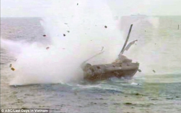 Sau 20 phút bay căng thẳng, chiếc trực thăng của Nguyễn lượn vòng trên biển Nam hải trong tình trạng một sống một chết, và những thủy thủ Hoa Kỳ trên chiếc tàu gần đó chỉ còn biết đứng ngó sửng.