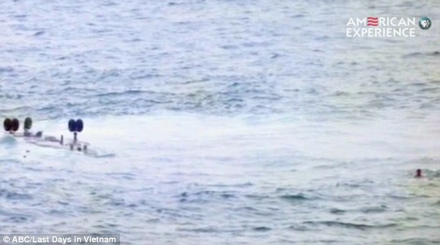 Đột nhiên một cái đầu nhô lên khỏi mặt biển. Nguyễn còn sống! Ông ta đã cố lặn thật sâu khi chiếc Chinook vừa chạm mặt nước. Còn khoảng màu đỏ loang trên biển là dầu thủy điều của chiếc trực thăng.