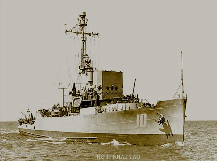 Sau khi hai chiếc tàu đụng nhau, tiếng súng lớn dường như im bặt, chỉ còn nghe những tiếng súng nhỏ. Giai đoạn hải chiến hình như chấm dứt. Anh em đồng đội chuẩn bị cứu thương lẫn nhau. Hầm máy đang cháy, nhân viên phòng tai lo cứu hỏa. Một số nhân viên cơ khí chết thui dưới hầm máy. Những anh còn tỉnh thì được kéo lên boong chánh. Trung úy Huỳnh Duy Thạch (cùng là đàn anh của tôi xuất thân từ trường Việt Nam Hàng Hải Thương Thuyền, cũng là Cơ Khí Trưởng của chiến hạm HQ10, chẳng may đã tử trận trong hầm máy. Ôi ! tiếng rên la áo não ngần nào. Đài chỉ huy hoàn toàn tê liệt, cả cầu thang từ trung tâm chiến báo (CIC) lên đài chỉ huy cũng bay mất một góc.